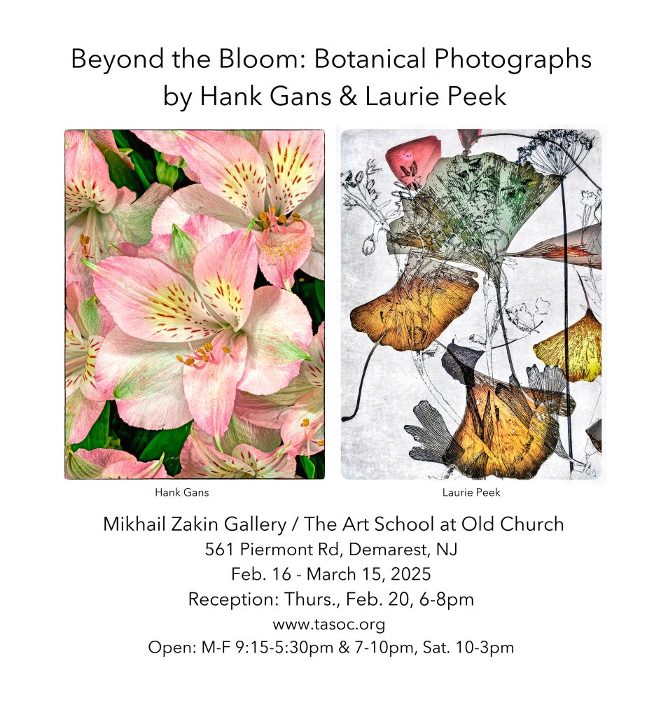 Join us in celebrating the stunning artistry of local photographers Hank Gans and Laurie Peek at their upcoming photography show, “Beyond the Bloom: Botanical Photographs.” The exhibition will be held at the Mikhail Zakin Gallery at The Art School at Old Church, located at 561 Piermont Road, Demarest, NJ. Join them for the opening reception Thursday, February 20th, from 6–8 PM, to meet the artists and enjoy their remarkable work in person.